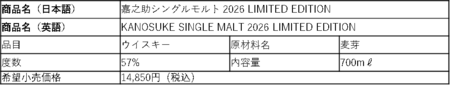 /鹿児島県日置市)は、2026年2月25日に「嘉之助シングルモルト 2026 LIMITED EDITION」を発売いたします。