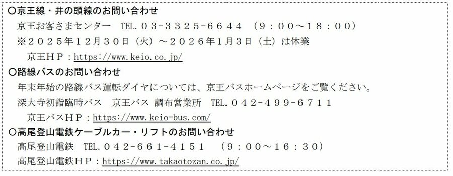 Ⅲ. 大晦日・元日の高尾登山電鉄ケーブルカー・リフト運行時間帯について