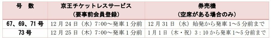 2025年12月27日(土)~2026年1月4日(日)までの期間、京王電鉄バスグループの路線バスは、日曜・祝日ダイヤ(一部の路線を除く)で運行します。