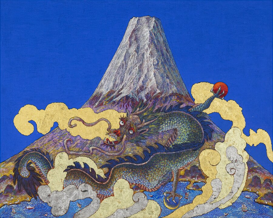 2001年、日本藝術院会員に任命された絹谷は、21世紀に入り、「宇宙」「銀河」「光の爆発」といった壮大な主題へと向かう。《蒼天富嶽龍宝図》(2008年)では、富士山や太陽を生命の象徴として描き、金箔なども作品に融合させた。鮮烈な色彩と光の表現は、生命の歓喜と平和への祈りを感じさせ、人間存在の根源に迫る作品群となった。