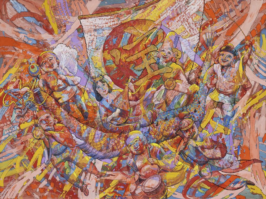 1990年代には公共施設や大学に壁画を制作し、芸術を社会に開く新たな試みを展開。教育者として東京藝術大学で後進の育成にも尽力した。《銀嶺の女神》(1997年)は長野冬季五輪公式ポスターの原画となり、明快な色彩と躍動する構成が国内外で高く評価された。モチーフは家族や平和など普遍的なテーマへと広がっていった。
