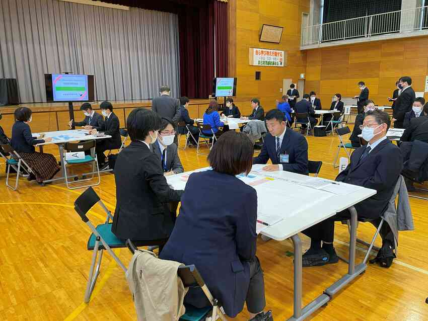 さらに、上越市教育委員会早川義裕教育長、学校教育課平井恵理指導主事をはじめ、学校運営協議会(コミュニティ・スクール)の委員、保育園、社会福祉協議会、小学校、中学校中等教育学校、上越教育大学教職大学院等、様々な立場から約40名の皆さんが参加してくださいました。
