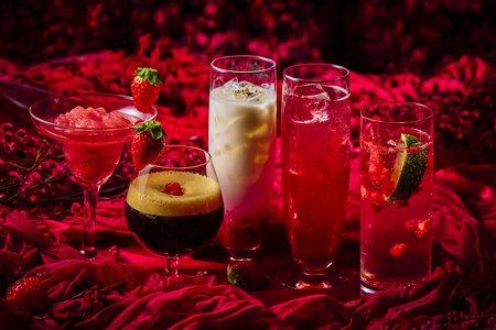 企画テーマを表現した、甘美で妖艶なオリジナルカクテル&モクテルもご用意。一口で“紅酔の世界”に惹き込まれるような、オリジナルドリンクをお楽しみいただけます。