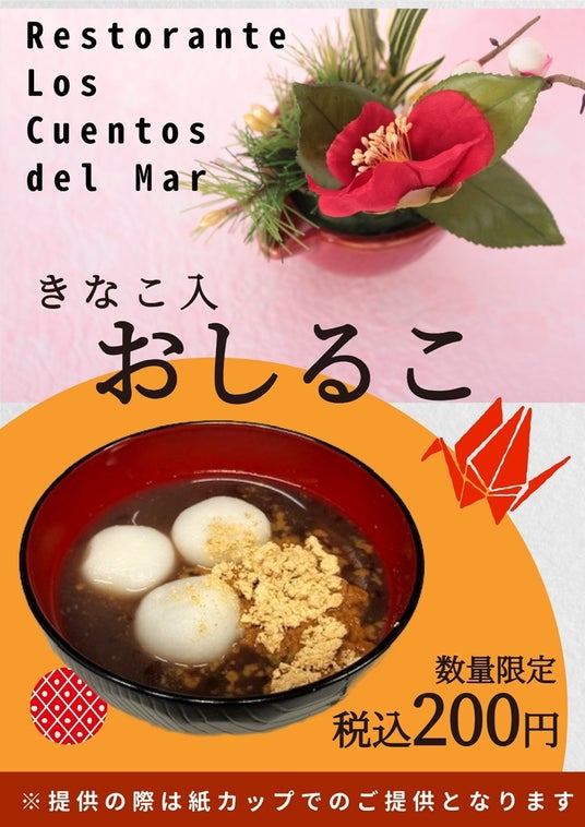 1階レストラン「レストランテ ロス クエントス デル マール」では、新年からきなこ入おしるこを数量限定で販売します。
