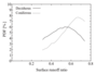 本研究における注目すべき成果は、流域における水温形成と流域の流出過程とが密接な関係にある点を明らかにした点です。日射、地形、植生の被覆度など複数の要因が関与して水温は形成されますが、これらの要因を勘案しても、流域において地下水流出※3 が全流出に占める割合の相違が水温形成に大きく寄与していることが示唆されました。さらに、この特性を用いて簡易な線形混合※4 に基づいた水温モデルを構築することにより、地表流出※5 が全流出に占める割合(同時に地下水流出が全流出に占める割合も求められる)の確率分布を求めました(図2)。 その結果、スギ・ヒノキの人工林では、地表流出の割合が 70% 程度の位置にピークがみられたのに対して、落葉広葉樹天然生林では、 55% 程度の位置に見られ、落葉広葉樹天然生林における地下水の流出への寄与の割合が高い傾向が示されました。