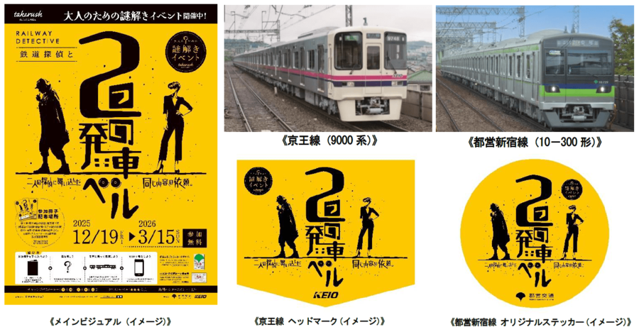 京王電鉄株式会社(本社:東京都多摩市、取締役社長:都村 智史、以下「京王電鉄」)と東京都交通局(東京都新宿区、交通局長:堀越 弥栄子)では、大人のための謎解きイベント『鉄道探偵と2つの発車ベル』を2025年12月19日(金)から2026年3月15日(日)まで実施します。本イベントは、駅で配布する冊子に記載された謎を解き京王線・井の頭線・都営地下鉄の沿線をまわり、集めた手がかりを頼りに謎を解き明かしていく体験型イベントです。