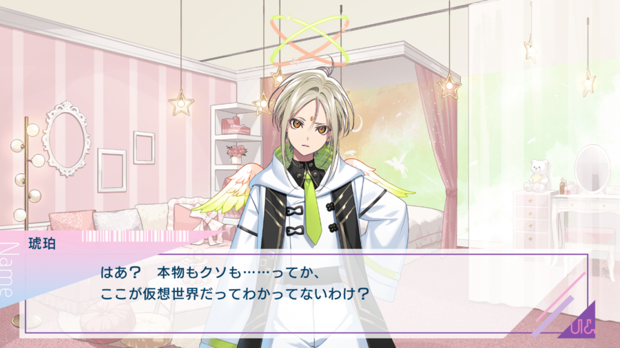 こちらの体験版では開発中のVRゲーム『アンロジカル』に招待される「序章」からそこで出会った謎の青年・雅火(みやび)にゲームの「運営」としてスカウトされる「共通ルート1章」までを遊ぶことができます。