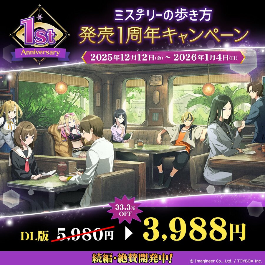 イマジニア株式会社(東京都新宿区、代表取締役社長 兼 CEO澄岡和憲)は、Nintendo Switch™ソフト『ミステリーの歩き方(以下「本作」)』につきまして、本作の発売から1周年を記念し、本編のダウンロード版セール、公式Xでの各種キャンペーンを開始しましたのでお知らせします。