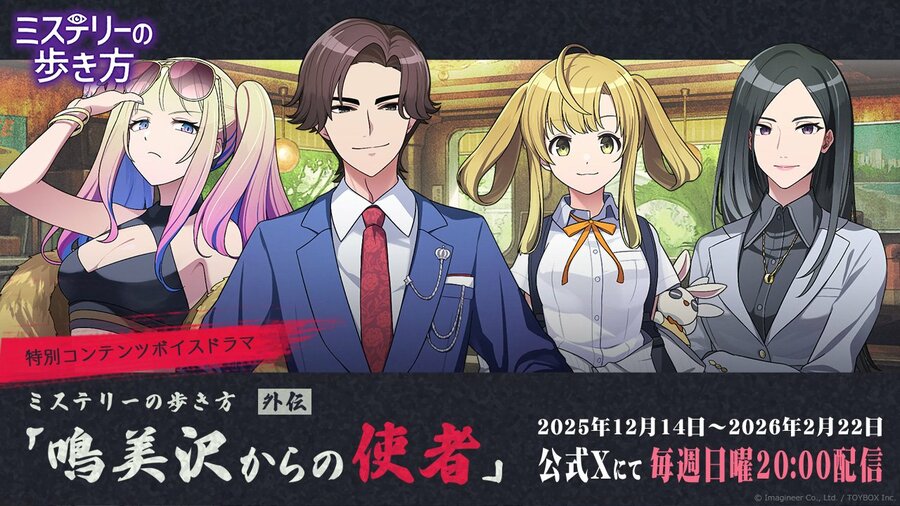 2025年12月14日(日)~2026年2月22日(日)にかけて毎週日曜20:00に、本編物語の後日譚を描いたボイスドラマ『~ミステリーの歩き方 外伝~ 鳴美沢からの使者』を、公式Xアカウントにて無料で配信します。