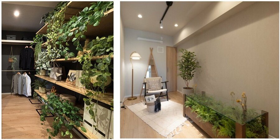 触れる、香る、眺める、愛でる――植物は日々の生活にゆとりを生む存在です。当社は、都会の暮らしに潤いと安らぎを届けるため、みずみずしい新芽や季節を彩る花など、日常にさりげなく寄り添う緑を大切にできる暮らしを提案します。各居室には、植物を掛けられるハンギングレールのほか、観葉植物を飾れるスペースを確保したカウンターや可動棚を設置し、お気に入りの観葉植物に囲まれる、木漏れ日を感じるような心地よさのある暮らし方を紹介しています。