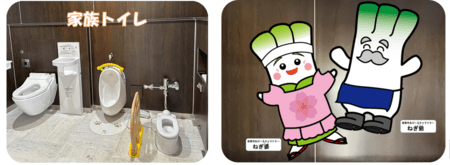 お子様連れのお客さまにも安心してご利用いただけるよう、ご家族でご利用いただける「家族トイレ」を設置します。家族トイレはおむつ替えにもご利用いただけます。