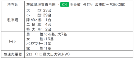 NEXCO東日本(東京都千代田区)は、[C4]首都圏中央連絡自動車道(以下「圏央道」)外回り 坂東インターチェンジ(以下「IC」)~常総IC間に新たに坂東(ばんどう)パーキングエリア(以下「PA」)(茨城県坂東市弓田)をオープンします。