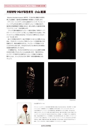 同展は、2024年に神戸市のFelissimo chocolate museum(フェリシモ・チョコレート・ミュージアム)で開催され好評を博した企画展で、恐竜博物館の特別展として巡回展示します。小山氏が制作した10体のチョコレート恐竜に加え、今回のために新たに制作したフクイベナートルのチョコレート恐竜を展示します。