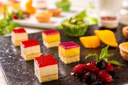 季節感を意識したスイーツを10種類以上ご用意し、いちごカップケーキや抹茶カップケーキをはじめ、ケーキやタルトなどの多彩なデザートが並びます。さらに、チョコレートファウンテンやソフトクリーム、ジェラートなども揃い、写真映えする華やかさと、お子様にも楽しんでいただけるラインアップでクリスマスの雰囲気を盛り上げます。