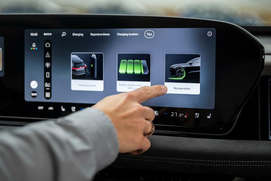 また、アウディは電動PPEモデルの効率を上げ、回生ブレーキの改善も進めています。車両は従来の摩擦ブレーキに切り替えずとも減速、停止までできるようになります。停止までの動きは非常に滑らかで、さらに快適になります。追加で回収される運動エネルギーはエネルギー回生に利用され、効率と航続距離を改善します。