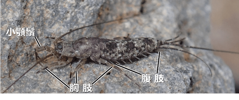 昆虫類は全動物種の 3/4を占める最も繁栄した動物群です。その 99% は馴染みのある翅(はね)をもつ有翅昆虫類ですが、残りの 1% は、翅を獲得する以前の段階をとどめる無翅昆虫類です。無翅昆虫類はカマアシムシ目、トビムシ目、コムシ目、イシノミ目とシミ目の5目からなります。中でも、原始的な無翅昆虫類の一群であるイシノミ目(図1)は、腹部にも肢(腹肢)があるなど昆虫類の祖先型をほうふつとさせる形態学的特徴を多数持っており、昆虫の進化を考える上で非常に重要な分類群とされています。