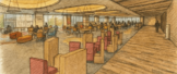 研究実験棟Ⅳ 1階の学生ホールに、コメダ珈琲店で使用されるソファと谷田研究室が考案したスリット家具を組み合わせた「次世代のくつろぎ空間」のイメージ