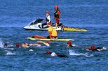 松田丈志さんと一緒にウオーキングを楽しむ参加者=佐渡市