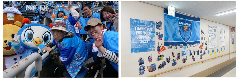 パーキンソン病を抱えながらも前向きな植竹さんが「Be supporters!(Beサポ!)(※)」の活動を通じ、4年間一度も外出していない中でスタジアム観戦に挑戦。施設スタッフやご家族、横浜FCの協力のもと、困難を乗り越え観戦を実現しました。当日は推しの選手からサインボールを受け取り、観戦を心から楽しみ、「次は応援歌を覚えたい」と新しい目標をお持ちになりました。