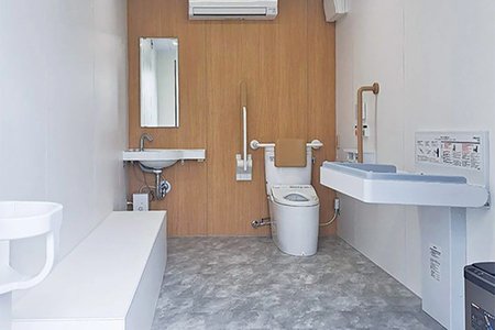ナンバープレートが付いた自動車として扱われますので、正しく設置する事で建築確認申請が不要です。災害時には被災地の2次避難所へ移動させることで、車いす利用者を始めとする様々な人へ安心出来るトイレ環境を実現できます。