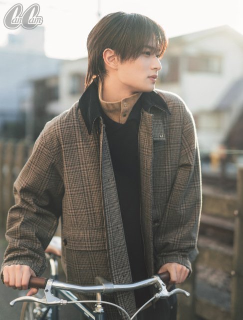 「完璧なEライン!」「神々しい」など、たくさんのコメントが届いたのは、ACEesのメンバーで俳優としても活躍中の浮所。“自転車でお散歩デートしたら”というテーマで、笑顔とのギャップがたまらない切なげな表情や、マフラーに顔をうずめる愛くるしい姿、日の光を浴びて透き通る琥珀(こはく)色の瞳など、カッコいいもかわいいも、すべてが詰まった美横顔をたっぷりと撮り下ろした。