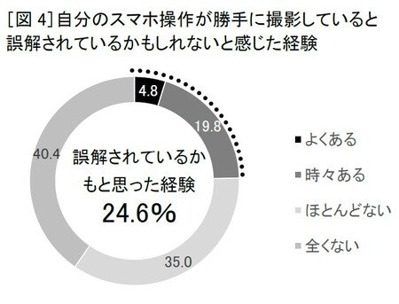 車内で「撮られているかも」「撮っていると誤解されたかも」と感じた人は どちらも約4人に1人
