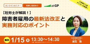 障害者の就労支援を中心にソーシャルビジネスを展開する株式会社ゼネラルパートナーズ(本社:東京都千代田区、代表取締役社長:進藤均)は、2026年1月15日(木)に、障害者雇用の最新法改正と実務対応のポイントに関する無料オンラインセミナーを開催します。