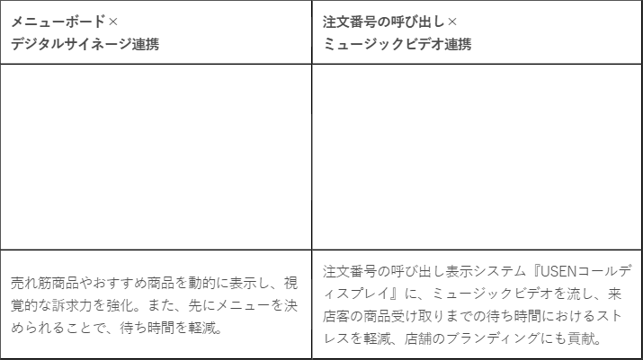 高輝度ディスプレイによる優れた視認性と、多彩なデザインパターン、さらに『USENレジ』と連携してAIを活用したレコメンド機能やデータ分析に基づくメニュー戦略により、従来のオペレーションでは実現が難しかった戦略的な販売促進が可能。