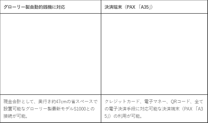 筐体はスリムかつコンパクトで、限られた店舗スペースを有効活用でき、設置空間と調和する洗練されたデザインも特長。