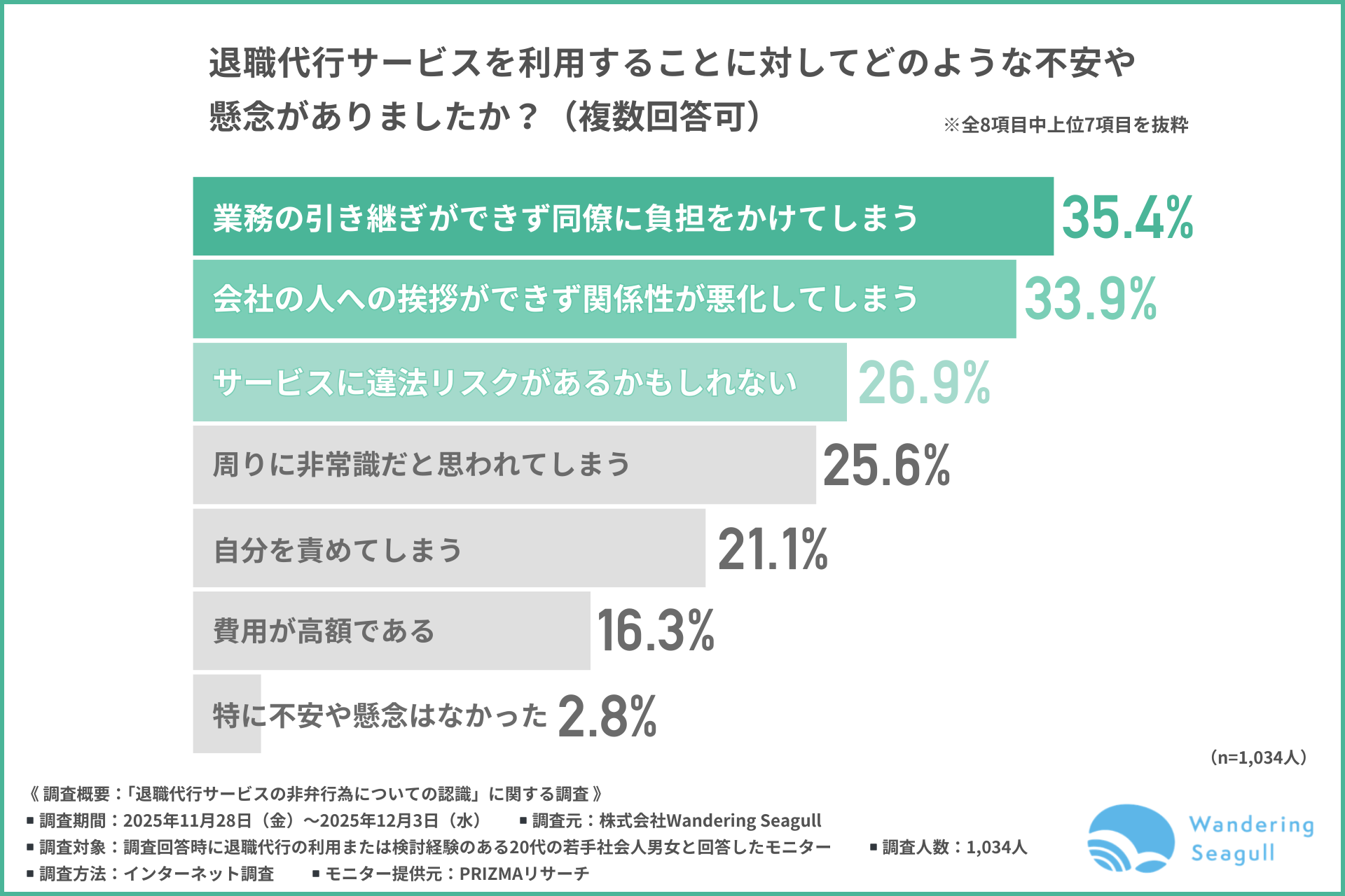 そのような中、退職代行サービスの利用に対して抱える不安や懸念はどのようなものであるのでしょうか。