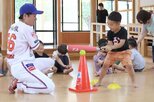 打撃練習では、浅井外野手が「しっかり踏ん張って、地面を足でつかまえるイメージを持とう」と、強い打球を打つポイントをアドバイス。真剣な表情の子どもたちは、下半身を意識してティーバッティングに取り組んでいた。ゲーム形式の練習では、南波...