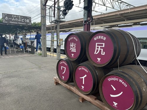 長野県の中央に位置するJR塩尻駅は、日本でただ一つ、駅構内プラットホーム上でぶどうを栽培している駅です。ここで収穫・醸造したワインは「塩尻駅メルロ」と命名されました。