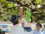 7月の笠掛作業。笠には園児達が絵を描いてくれました。