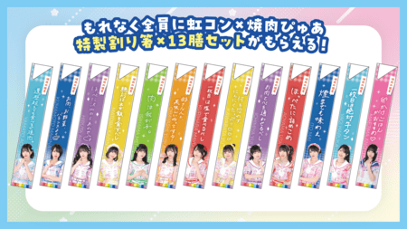 期間中、対象店舗でお好きなメニューを1品以上ご注文いただき、スタンプを5つ集めると「虹コン×焼肉ぴゅあ特製割り箸13膳セット」をプレゼントします。(お一人様一品以上のご注文につき、一スタンプ付与いたします。但し、同一店舗でのスタンプ付与は一日一回が上限となります。)