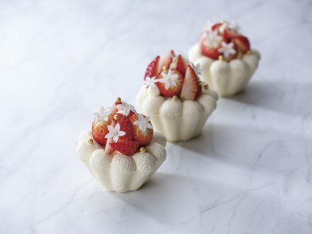 サクサクとしたタルト生地に、たっぷりの苺とコクのあるカスタードクリームを合わせ、アクセントにピスタチオを飾りました。