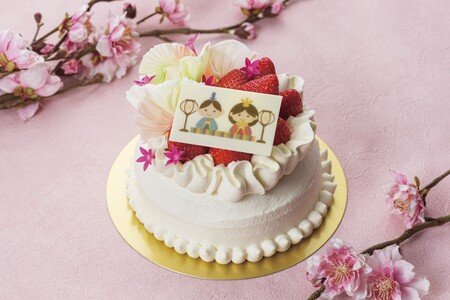 お 子さまの健やかな成長を願うひなまつりのお祝いに、ご家族皆さまでお楽しみいただけるショートケーキです。アルコール不使用の苺のショートケーキを、チョコレートや花で可愛らしく飾りつけました。