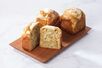 アールグレイが香る生地に、「紅玉」りんごのコンポートとアーモンドクリームを巻き込み、マカロン生地をのせて焼き上げたブリオッシュです。