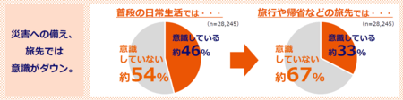 しかし、旅行や帰省で備えを意識している人は、わずか3割程度と判明。