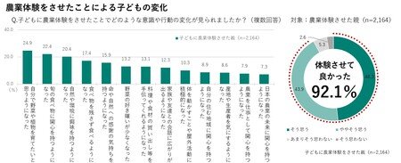 親の約8割が農業体験を通じて、子どもの成長を実感