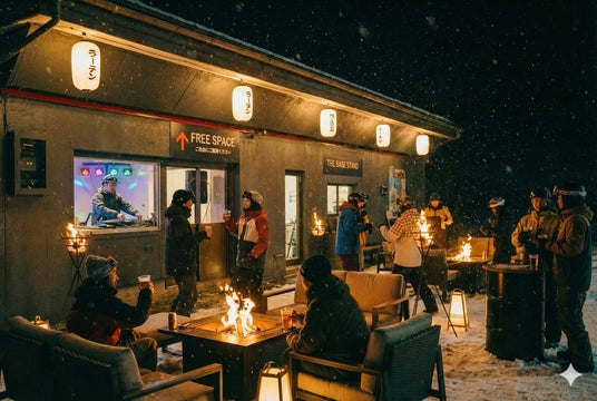 雪上に浮かぶ提灯の灯り、会話を彩る音楽、そして身体を温める食事とお酒。石打丸山での一日を幸福な余韻で満たす、特別なベースエリアを演出します。