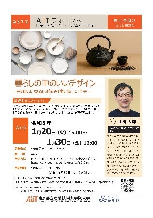 第31回 AIITフォーラム:暮らしの中のいいデザイン ~無料公開講座・2026年1月20日(火)よりオンデマンド配信~