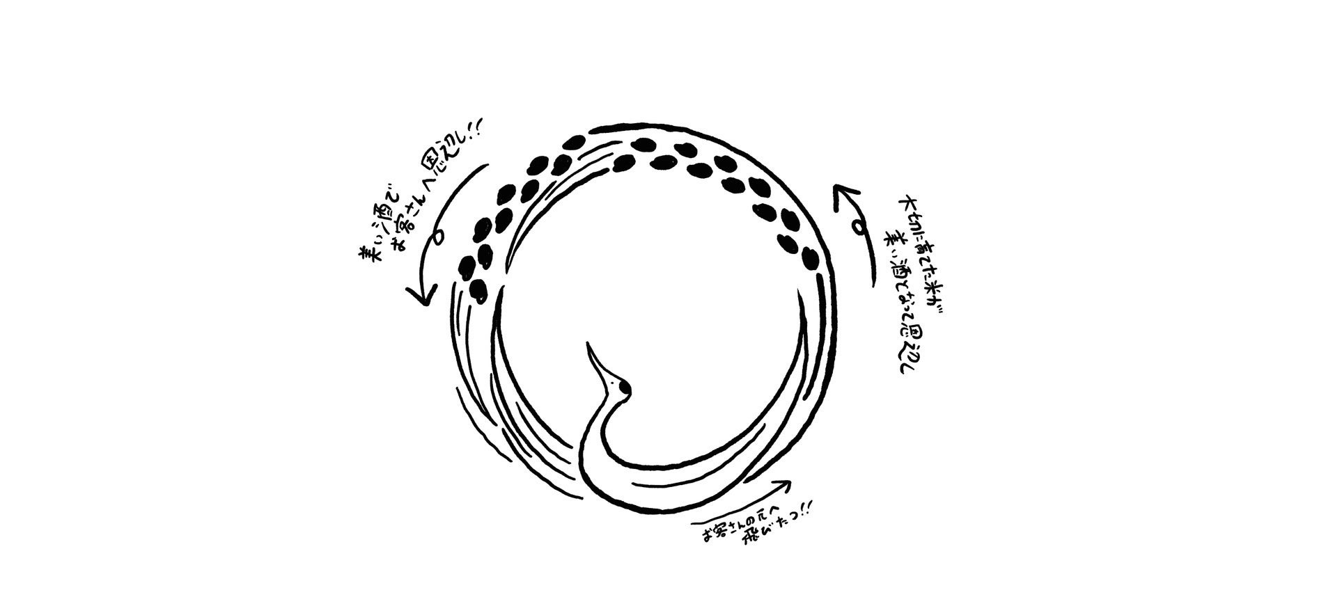 また、150周年を記念して恩田酒造の新しいブランドロゴを作成しました。これまでの銘柄「舞鶴」と「恩田酒造」から鶴と稲穂が循環して、地域の中で圃場を守りながら、たくさんの方への恩返しとしてお酒を届けていくことを表現しています。