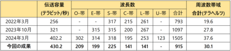 表1 今回と過去の広帯域WDM伝送実験との比較