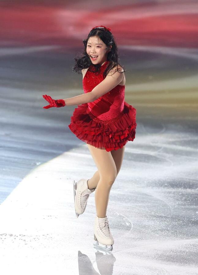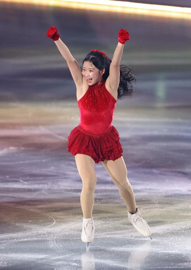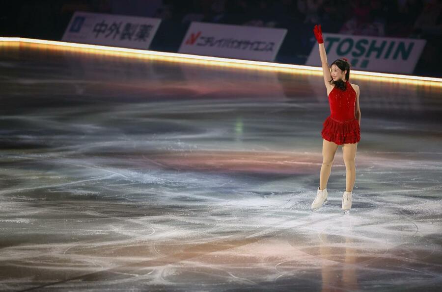 中井はこの日のエキシビションにも、赤い衣装で登場。明るい笑顔でジャンプやステップなどを披露して会場を大いに盛り上げた。