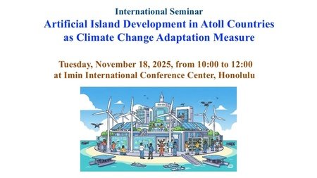 公益財団法人⽇本グローバル・インフラストラクチャー研究財団(所在地:東京都港区、理事長:中山幹康、略称:日本GIF)は、マーシャル諸島短期大学(所在地:マーシャル諸島共和国、英文名称:College of the Marshall Islands、略称:CMI)および法政大学(所在地:東京都千代田区、総長:ダイアナ・コー)とともに、2025年11月18日(火)現地時間午前10時から、米国ハワイ州ホノルルのImin International Conference Centerにて、「気候変動適応策としての環礁国における人工島開発」と題した国際セミナーを開催しました。なお、本セミナーは、JSPS二国間共同研究プログラム(共同研究(国外))JPJSBP120249945およびJSPS 基盤研究(C)24K03174の支援を受けて開催しました。