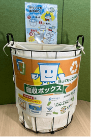 家庭で洗浄・乾燥した使用済み紙製食品容器を専用ボックスで回収。