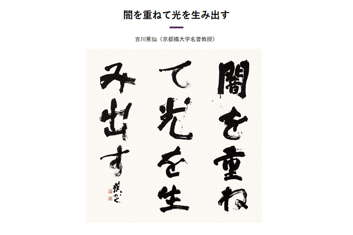 書道作品:日本の書道界を代表する吉川蕉仙(京都橘大学名誉教授)の「藤村いろは歌留多」 「驀直去」「闇を重ねて光を生み出す」「林壑翛然絶塵迹」の書道作品4点を公開。
