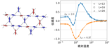 さらに、数値シミュレーションを用いてスピン相関の温度・磁場依存性を計算し、異常ホール効果の振る舞いを解析しました。その結果、非単調な温度依存性(図2右)には主に2つの起源があることを発見しました。