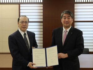左:学校法人帝京大学 冲永佳史 理事長、右:フランスベッド株式会社 池田一実 代表取締役副社長執行役員