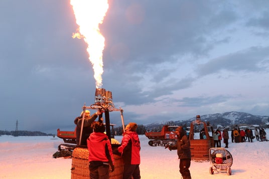 小千谷で冬に気球が飛ぶ光景が見られるようになったのは今から50年以上前で、数人の気球乗りが雪原でのフライトを求め、気球を飛ばしたことから始まりました。今では、「おぢや風船一揆」として市を代表する一大イベントの一つに発展し、全国の気球ファンや、カメラマンに知られ、毎年多くの人が来場します。